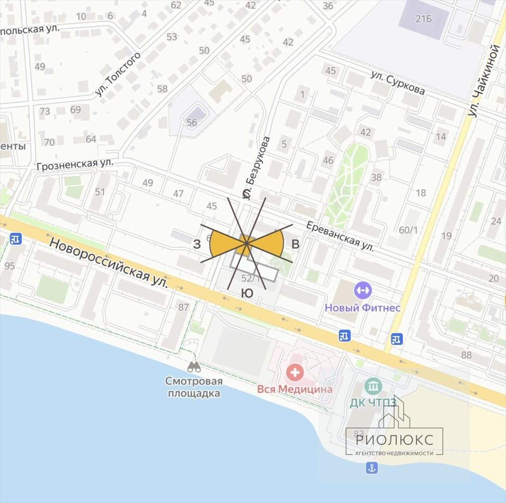 Жилой комплекс расположен на пересечении улиц Новороссийская и Безрукова в самой перспективной части Ленинского района,.Через дорогу находится благоустроенная набережная и озеро Смолино, в пешей доступности пляж, дворец культуры ЧТПЗ, развивающие студии для детей, спортивный стадион с футбольным полем.