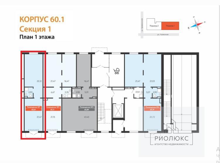 Нежилые свободного назначения площадью 49,49 м2, по цене 9898000 по адресу Чайкиной - 60/1 |