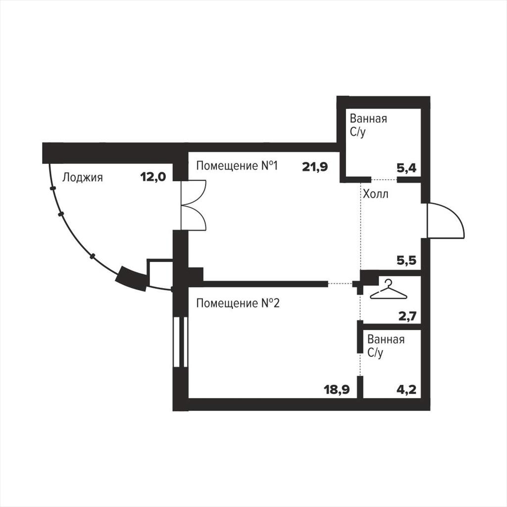 Жилая площадь 34.87 м2, кухня 21.9 м2, квартира без отделки, комнаты изолированные.