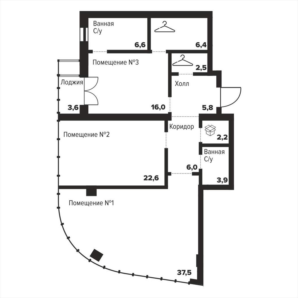 Жилая площадь 68.4 м2, кухня 37.5 м2, квартира без отделки.