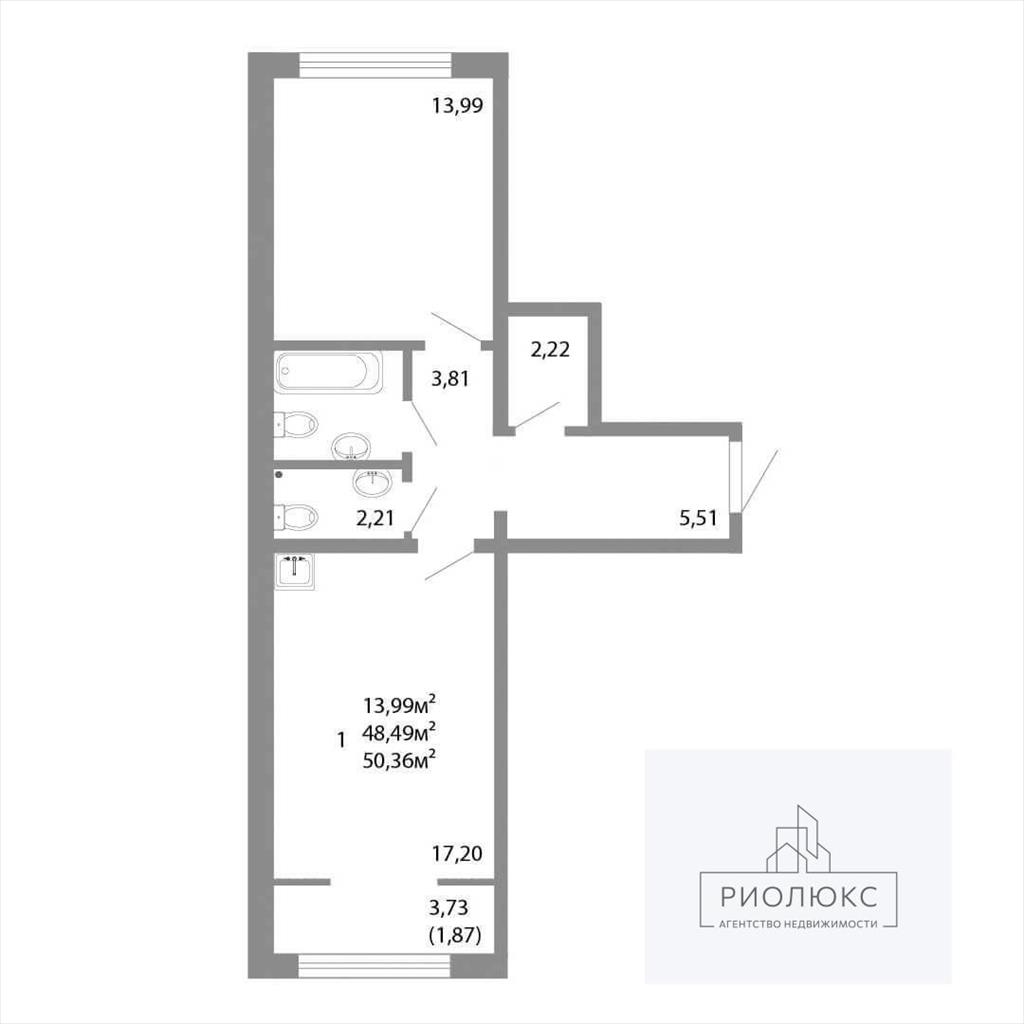 общая 50 м2, жилая 20 м2, кухни 17 м2 |