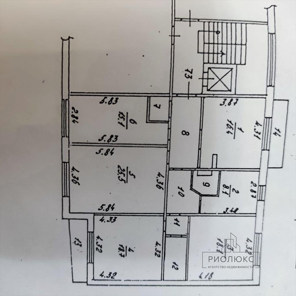 Общая площадь — 126 м², жилая — 100 м², площадь кухни — 16 м². Квартира расположена на 5-м этаже 10-этажного панельного дома.<br />