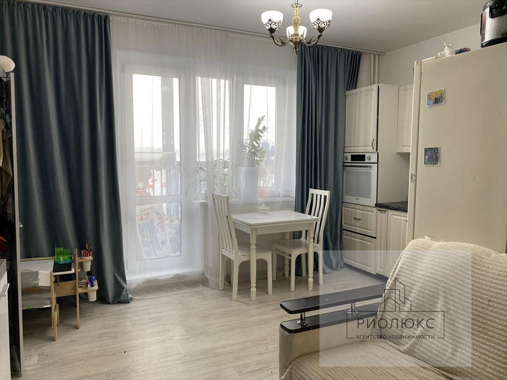 Просторная кухня-гостиная с выходом на застекленную лоджию - идеально для семейных вечеров и встреч с друзьями.<br />