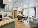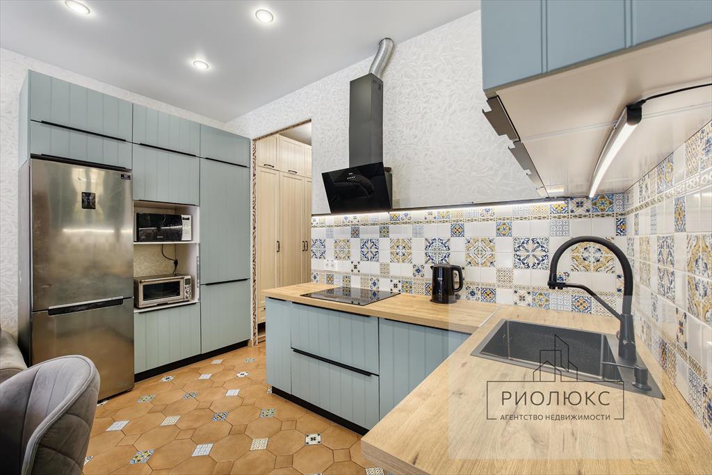 общая 77,7 м2, жилая 45 м2, кухни 22 м2 |