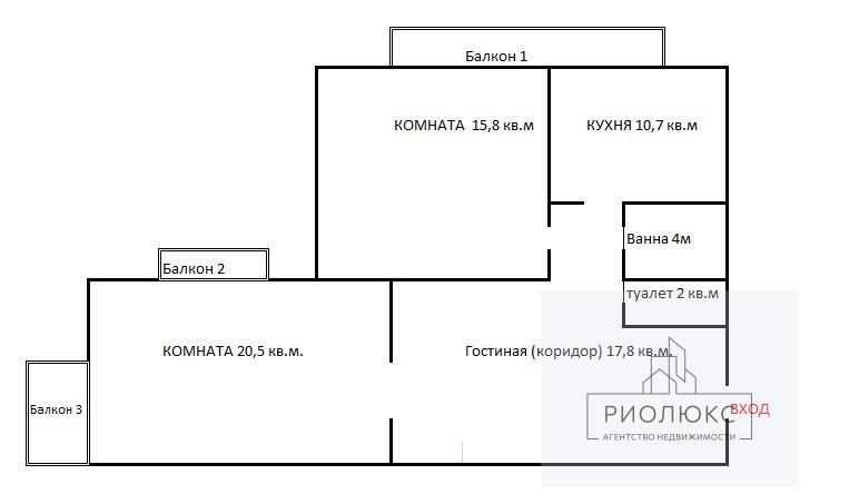 В квартире предусмотрено 3 балкона на разные стороны. Идеальное место для создания места отдыха, утреннего кофе, отдельного рабочего кабинета.<br />