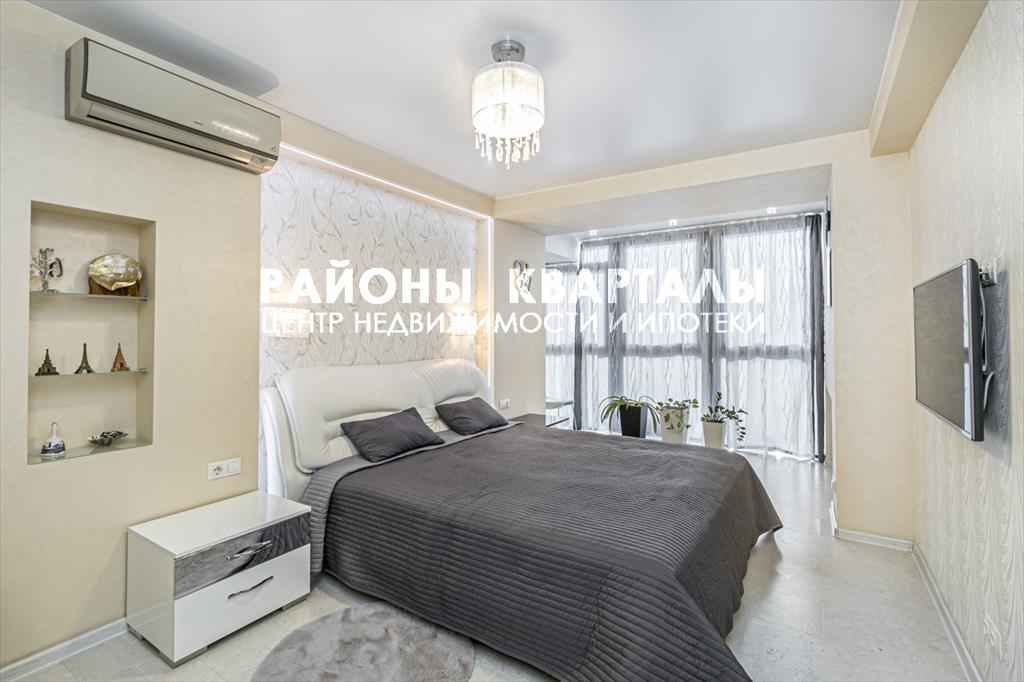 <p>В квартире выполнен качественный ремонт. Покупали в черновой отделке, все продумывали и делали сами, до мелочей. Горизонтальная разводка системы отопления. Дополнительно сделан теплый пол в санузлах и лоджии. На полу, в комнатах - ламинат, в одной из спален - ковровое покрытие, в коридоре и кухне - керамогранит. Потолки натяжные. Итальянские обои в светлых, приятных для глаз, тонах. В зале выполнено зонирование, отделена рабочая зона. Везде сделана дополнительная подсветка. Комнаты изолированные. Обустроена удобная и вместительная гардеробная. Два санузла- первый оснащен душевой кабинкой, второй , в мастер спальне с ванной. Окна выходят на три стороны, не на проезжую часть. Квартира светлая, много солнечного света.</p>