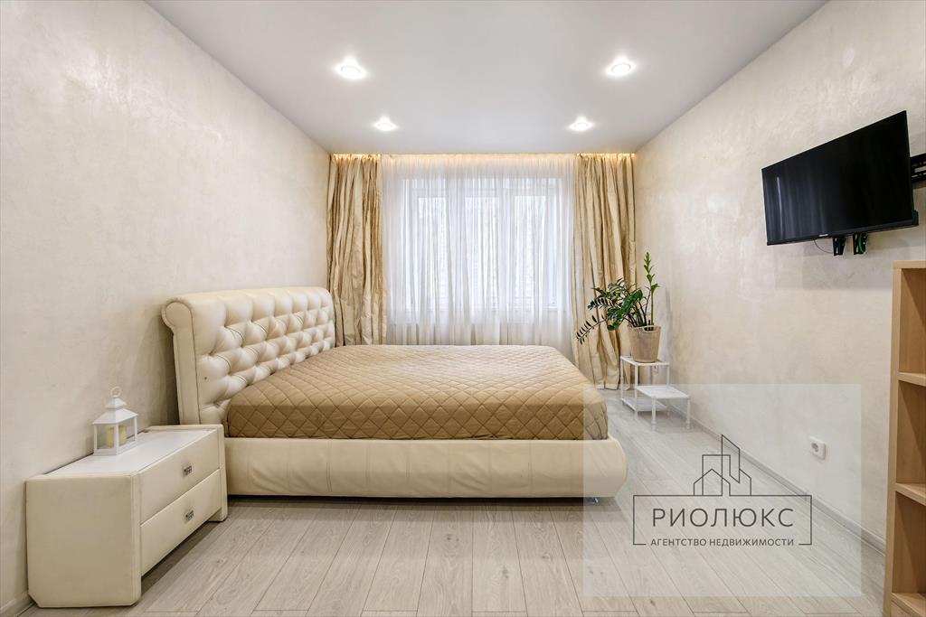 <strong>В просторных спальнях остаются: </strong>шкафы, тумбы, телевизор, большая двуспальная кровать с подъемным механизмом и матрасом ASCONA, также две полутороспальных кровати. <br />