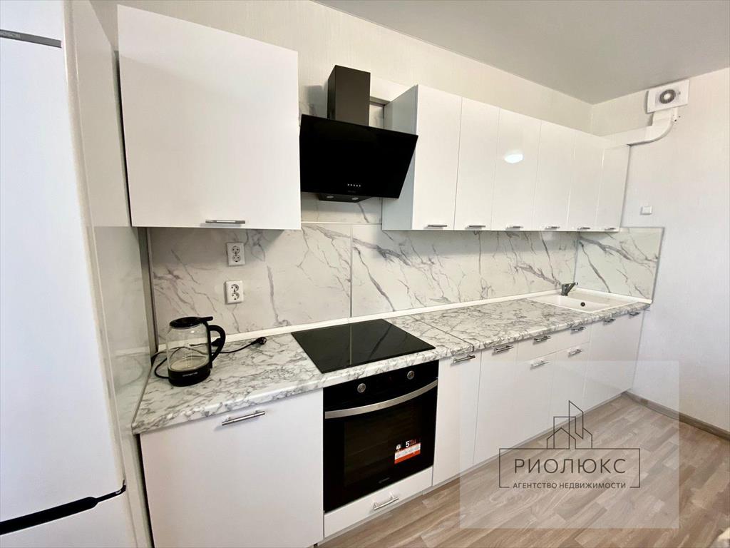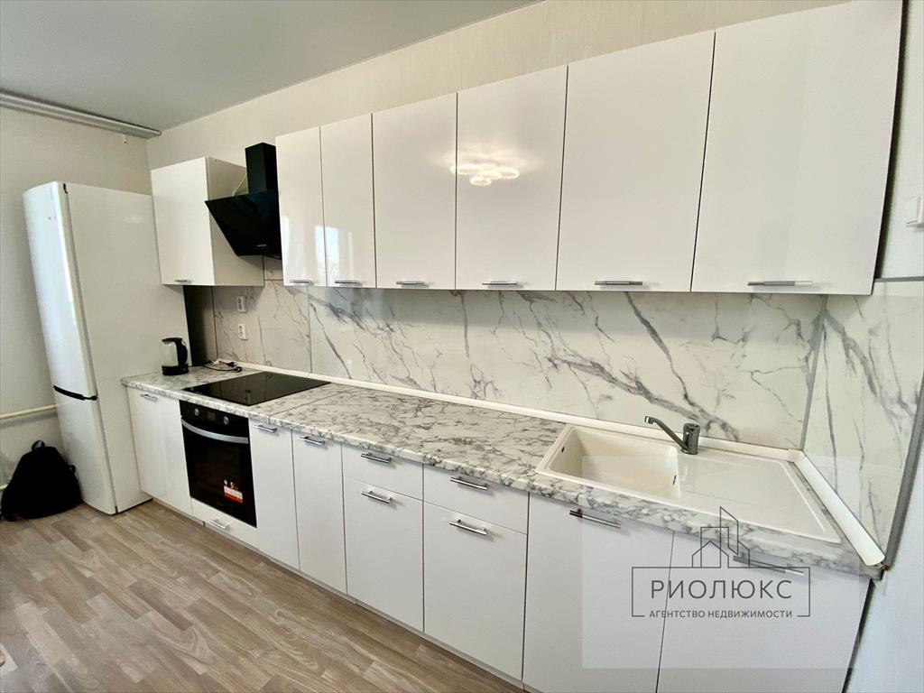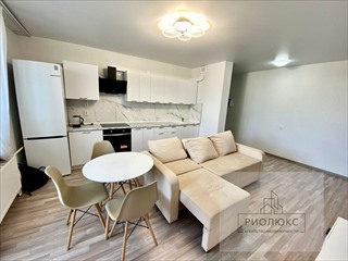 <strong>Покупателям остается вся мебель и техника на фото, кроме холодильника и стиральной машины (абсолютно новый кухонный гарнитур, новые плита BOSCH и духовой шкаф INDESIT, вытяжка, диван, обеденный стол со стульями, тумба под ТВ, кровать, шкаф, письменный стол, комод)</strong><br />